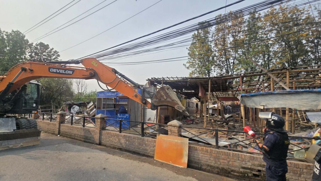 काठमाडौँ । थापाथलीमा घर टहरा भत्काउन सुरु भएको छ । बिहानैदेखि बाक्लो सुरक्षाकर्मीको उपस्थितिपछि बस्तीका मानिसले आफ्नो सामान हटाउन थालेका थिए ।