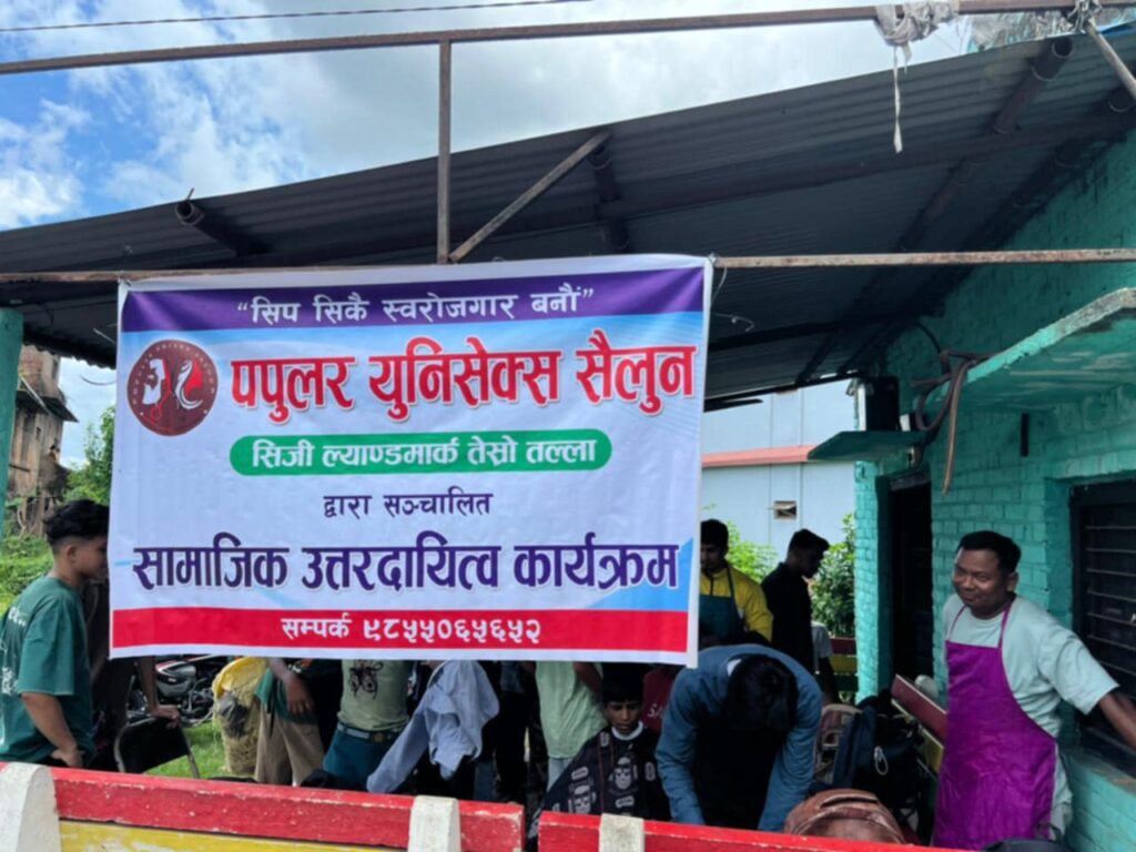 भरतपुर महानगरपालिका वडा नम्बर ६ स्थित ब्रह्मदेव टोल विकास संस्था परिसरमा पपुलर युनिसेक्स सैलुनले आफ्नो संस्थागत सामाजिक उत्तरदायित्व (CSR) अन्तर्गत विशेष सेवा कार्यक्रम सम्पन्न गरेको छ।